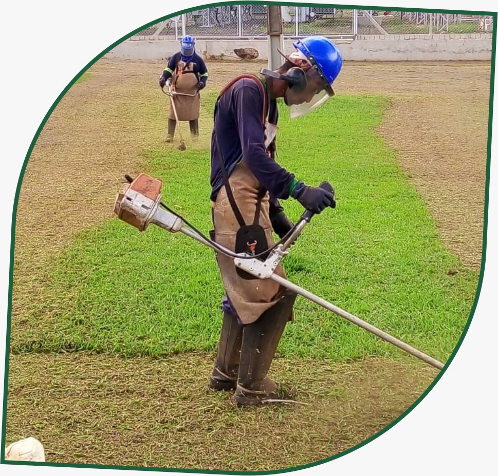 Trata-se do corte de vegetação que mantém uma cobertura viva sobre o solo, realizado com equipamentos cortantes como lâminas ou fio de nylon. Compreende gramados, macegas, ervas daninhas, mato, cipós, trepadeiras, etc.Todo o trabalho é feito com equipamentos especializados e direcionados para esta atividade, com toda a segurança.