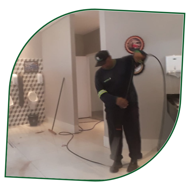 É a limpeza após a construção ter sido concluída, deixamos o ambiente limpo, pronto para o cliente se instalar no imóvel. Limpeza em pisos, paredes, vidraças e fachadas de lojas.